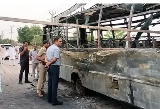 धमाके का शक: चश्मदीदों के मुताबिक, बस में पहले एक ज़ोरदार धमाका हुआ था। अब पुलिस इस बात की जाँच कर रही है कि क्या बस में कोई विस्फोटक सामग्री मौजूद थी।